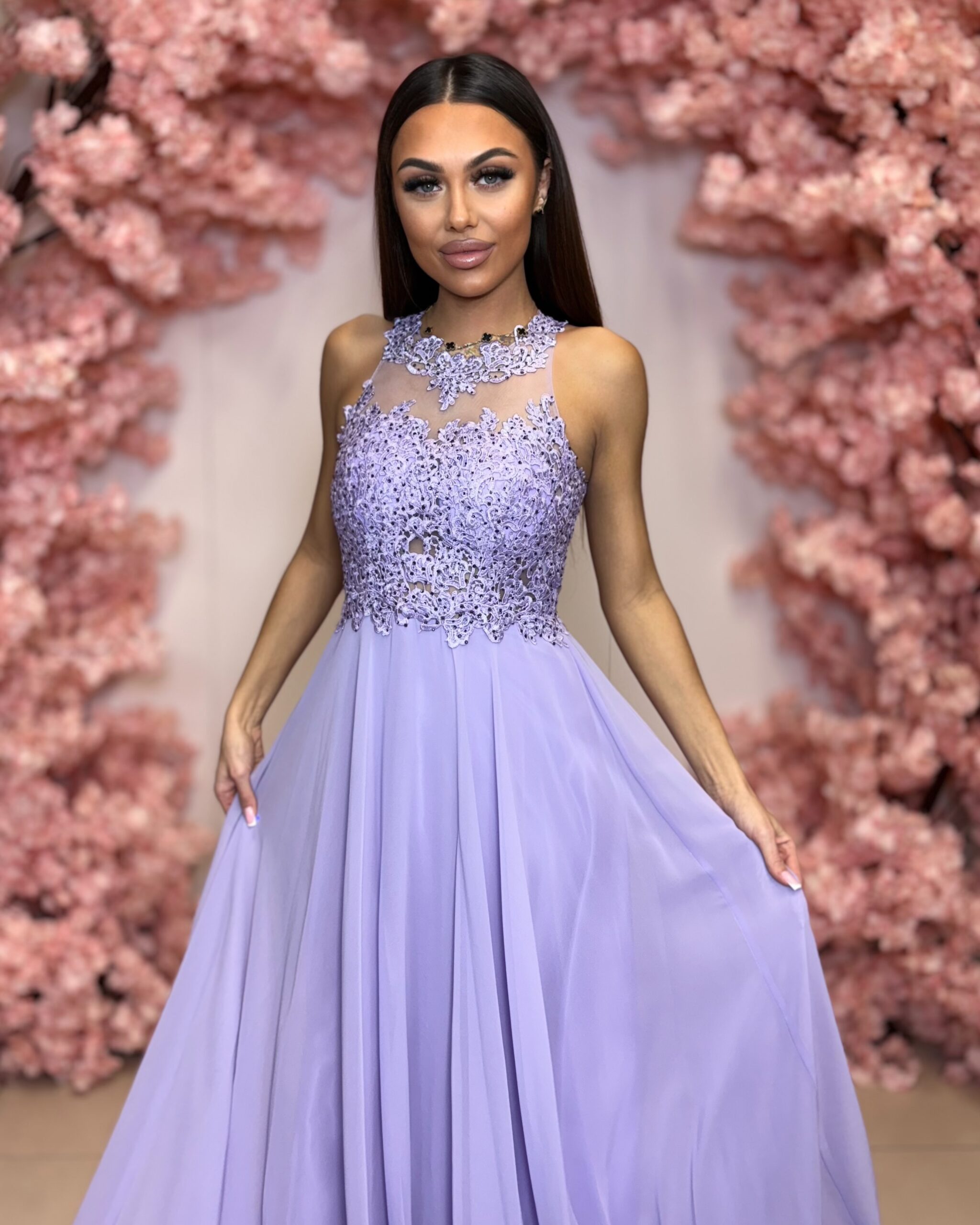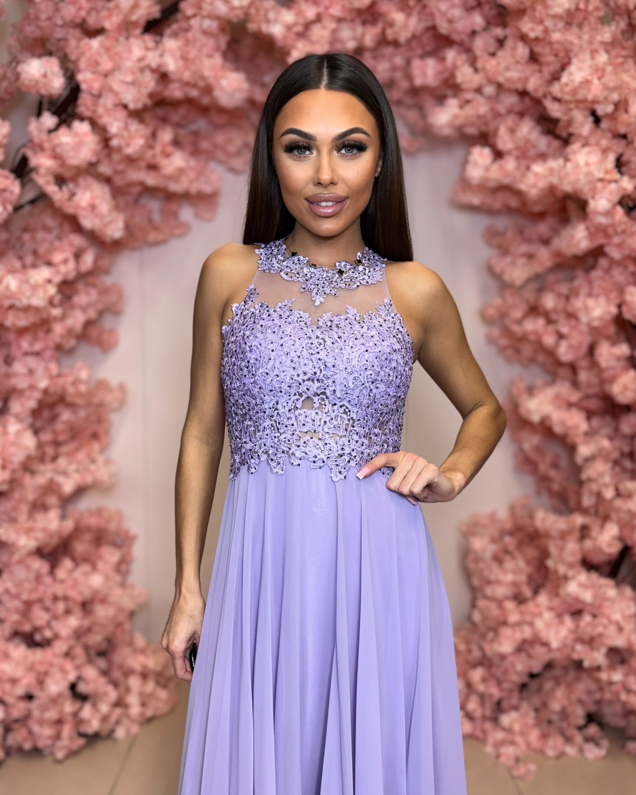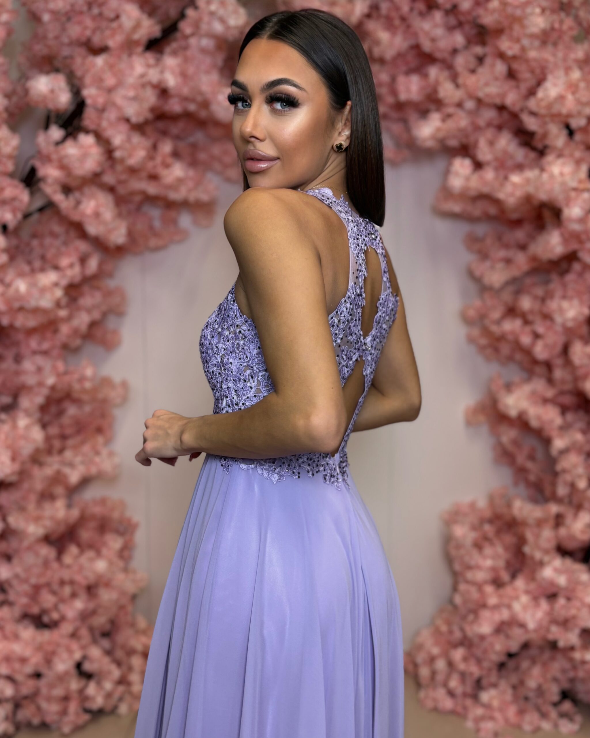 Žensky, elegantně a velmi pohodlně. Lehká šifonová sukně působí vzdušně, krajkový živůtek dodává šatům noblesu a levandulový odstín rozzáří celý vzhled. Šaty jsou perfektní pro ženy, které chtějí vypadat výjimečně, ale zároveň se cítit příjemně po celý večer.