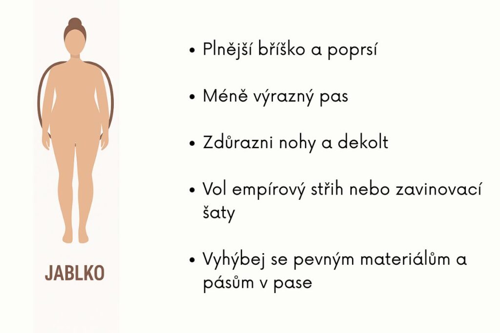 - Jestli máš plnější bříško a poprsí, tvoje postava odpovídá typu jablko.